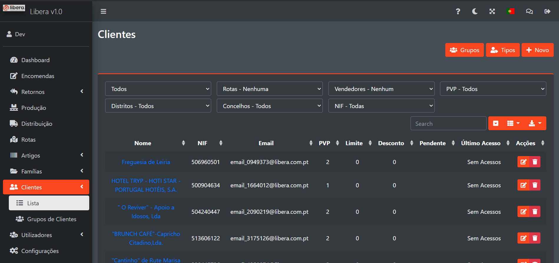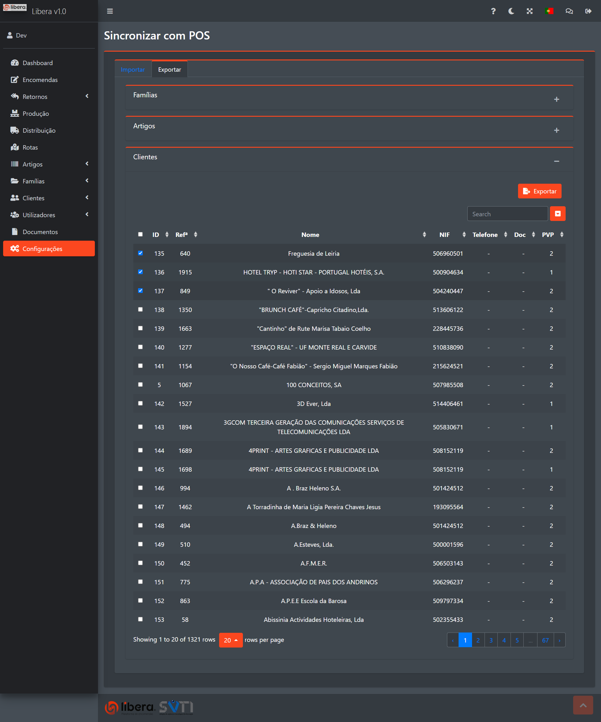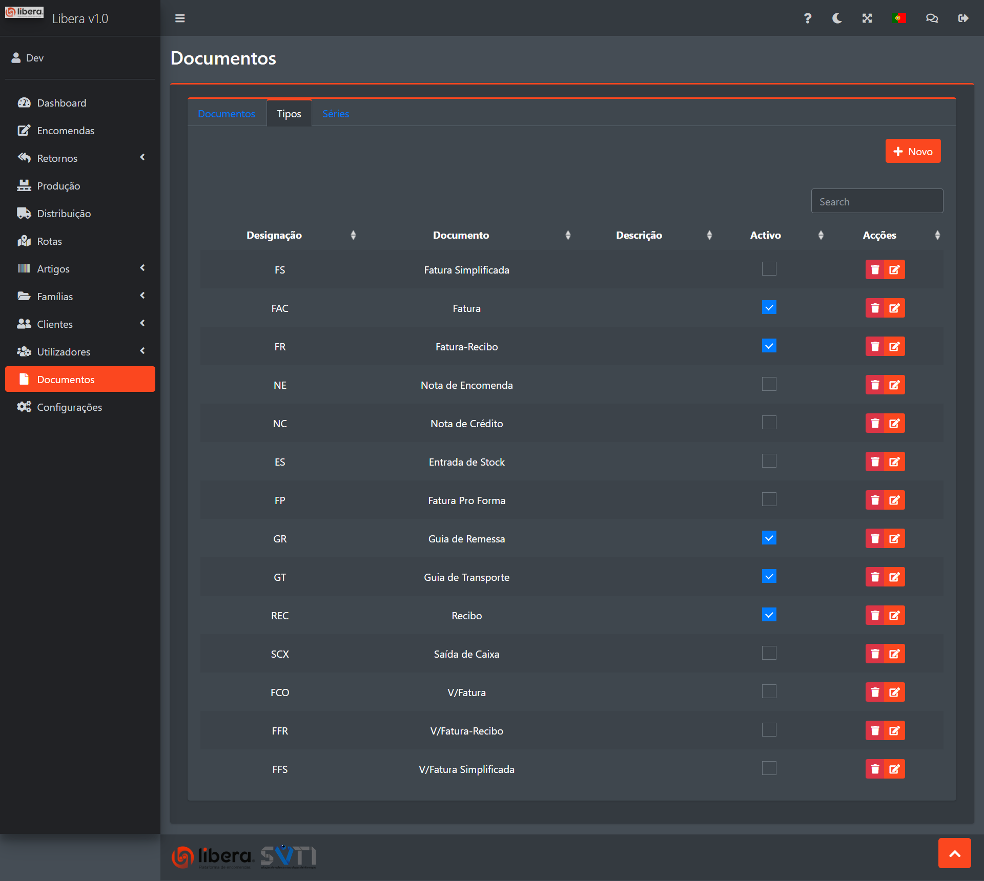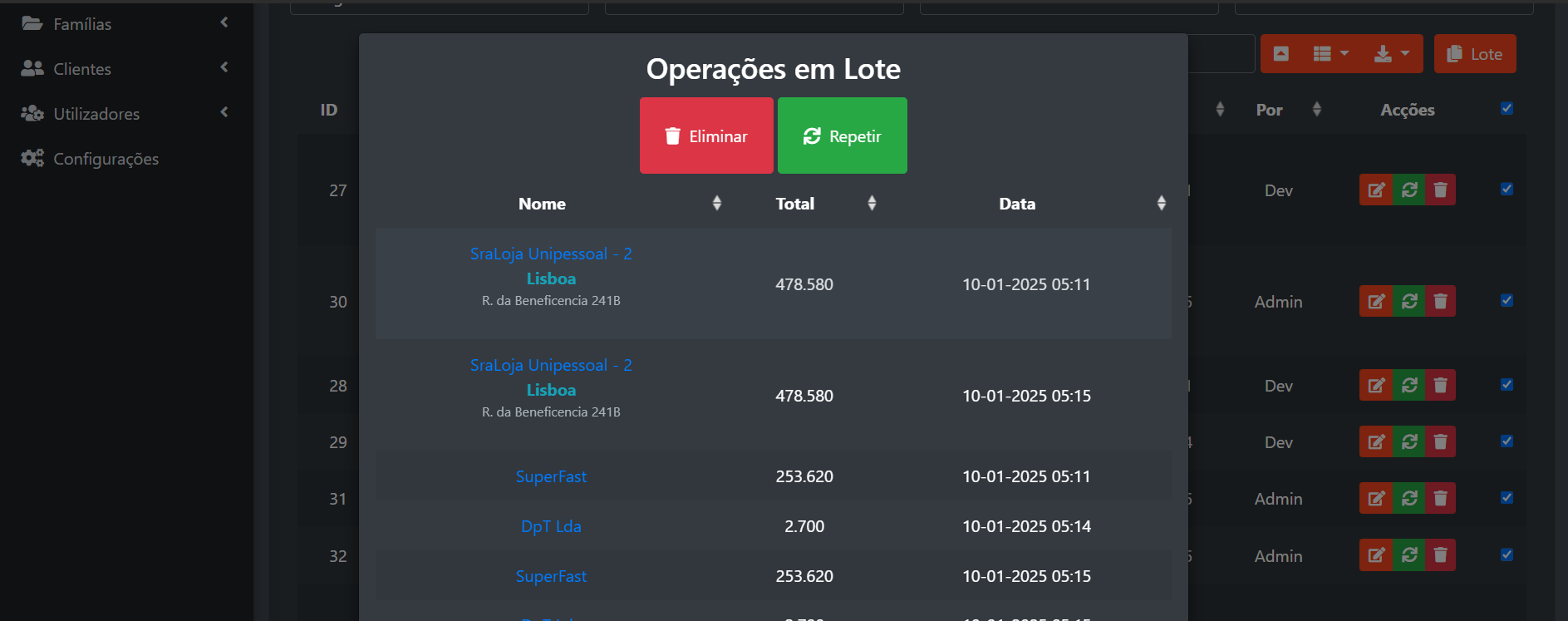 - Funcionalidade opcional dependente da activação do módulo de "Faturação".