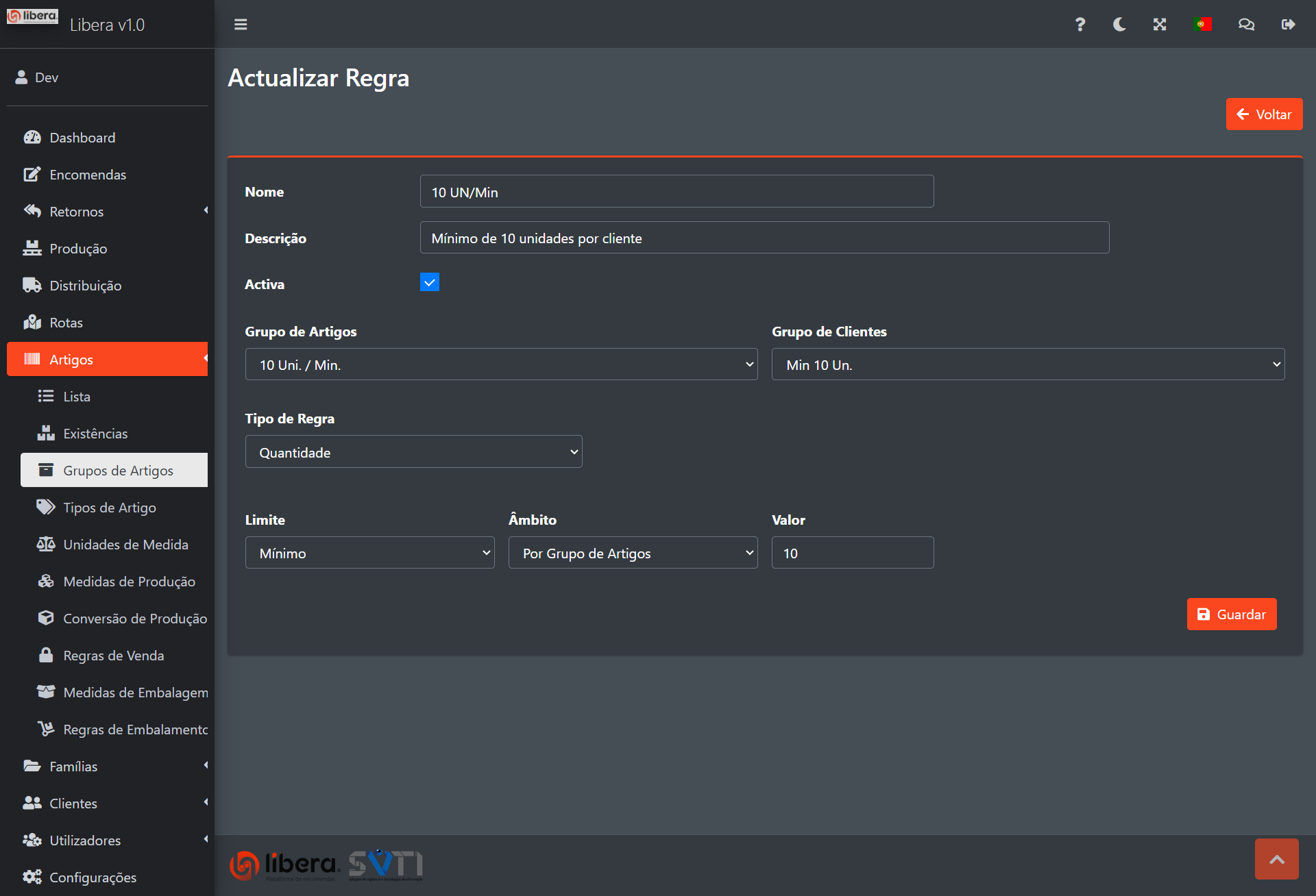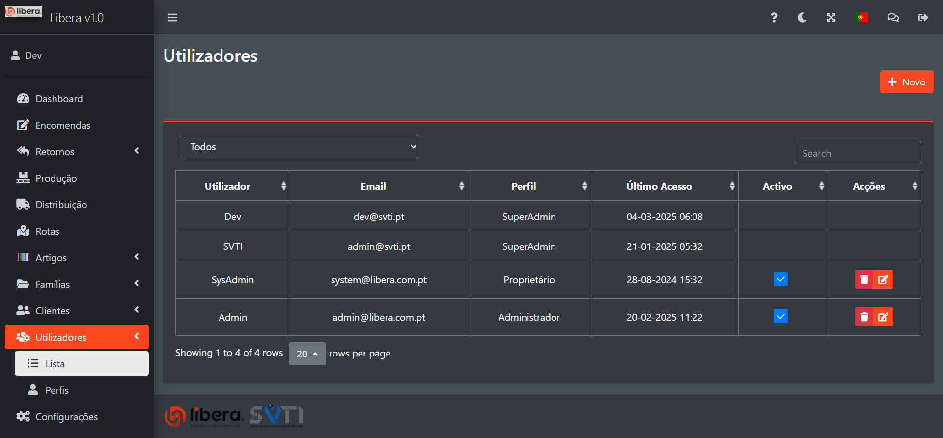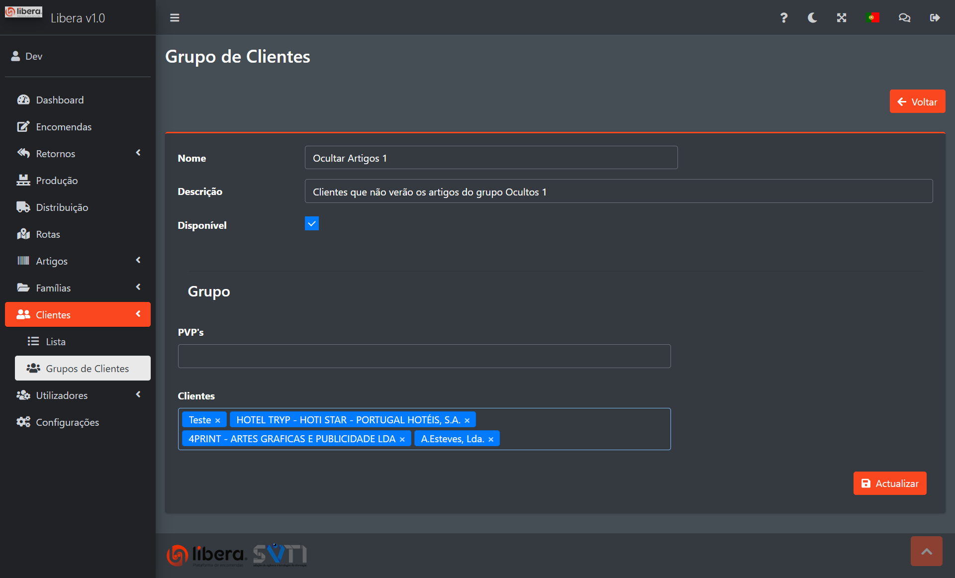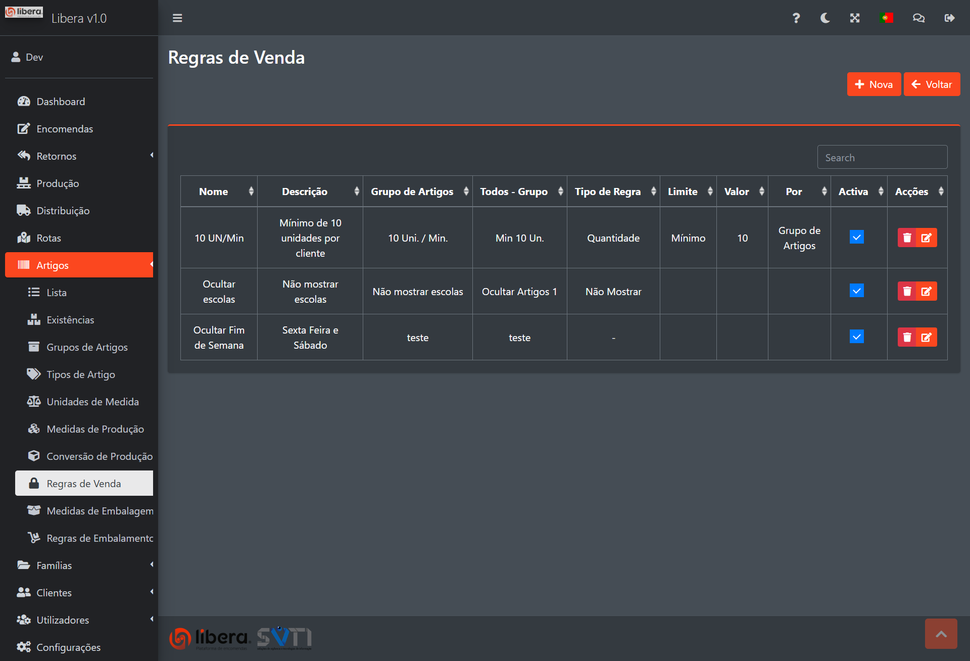 - Funcionalidade opcional dependente da activação do módulo de "Faturação".
