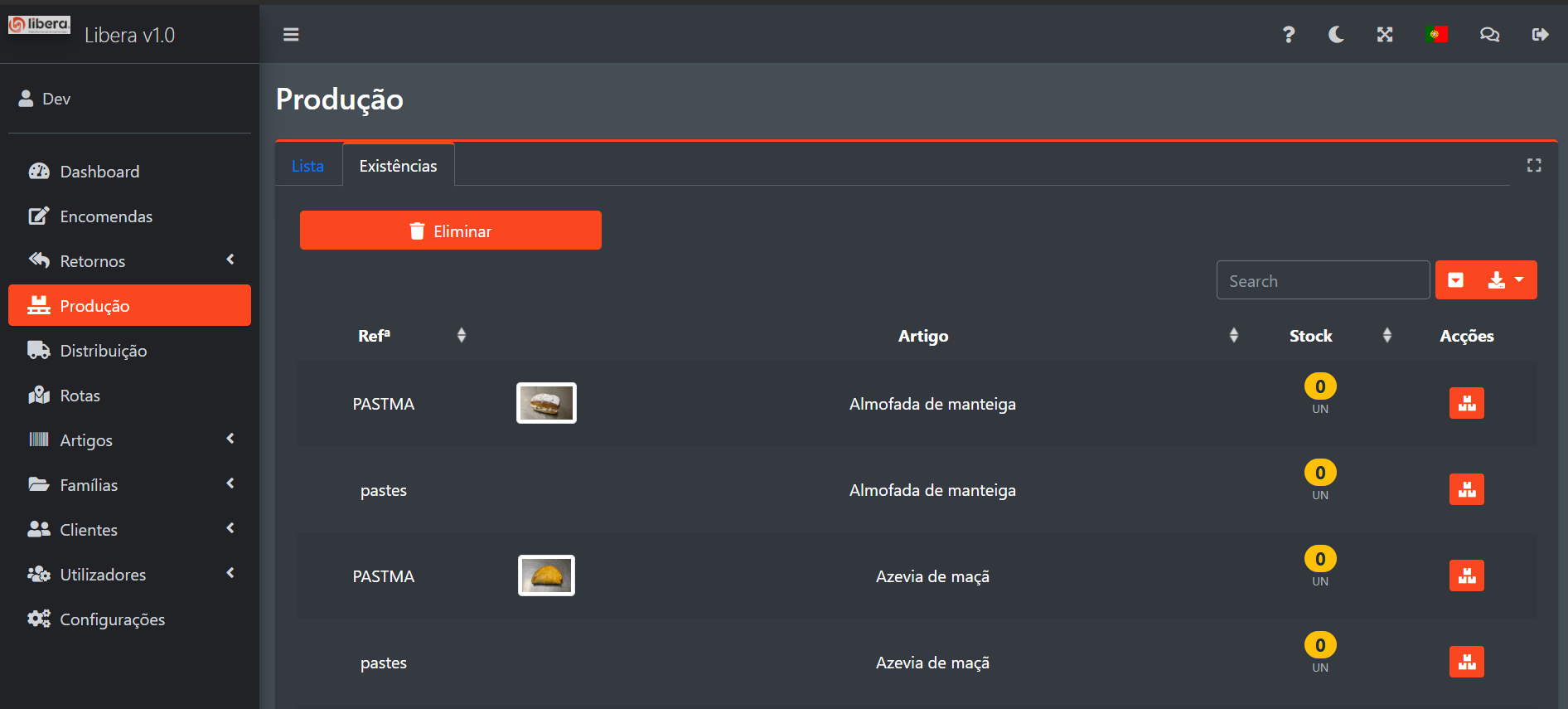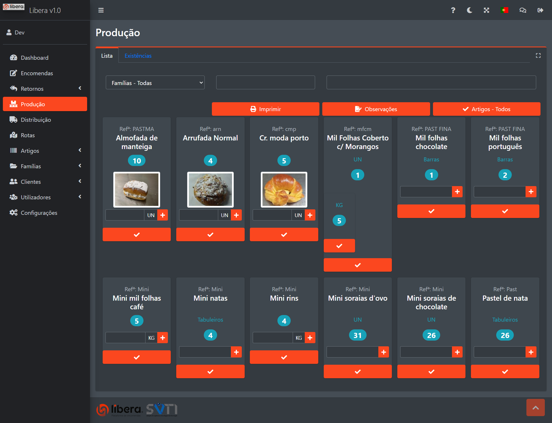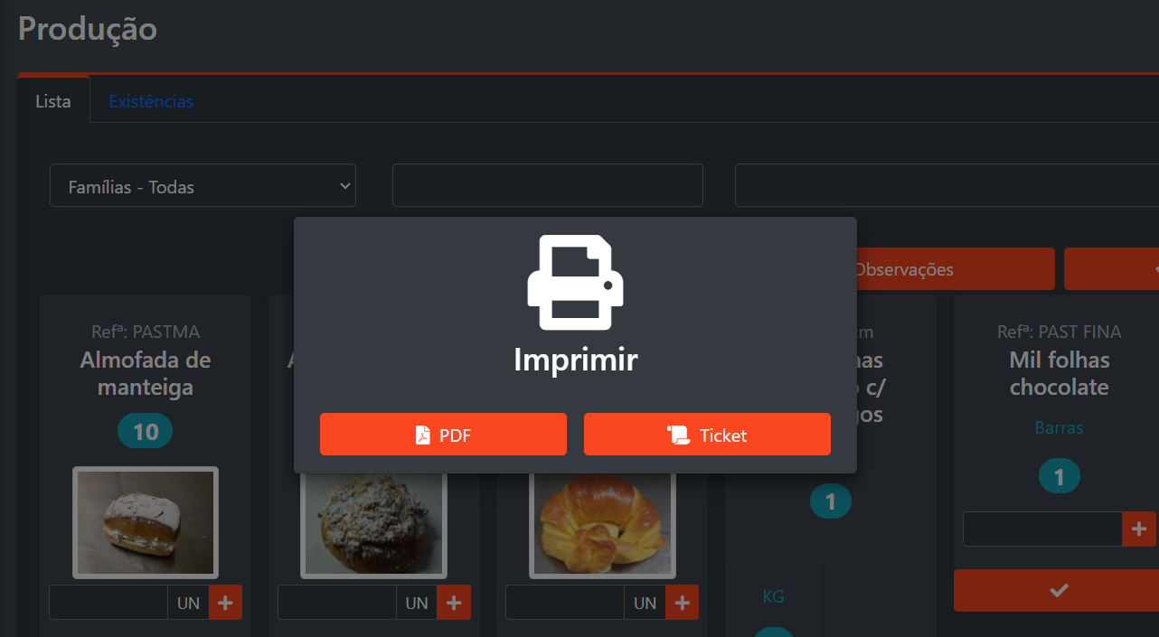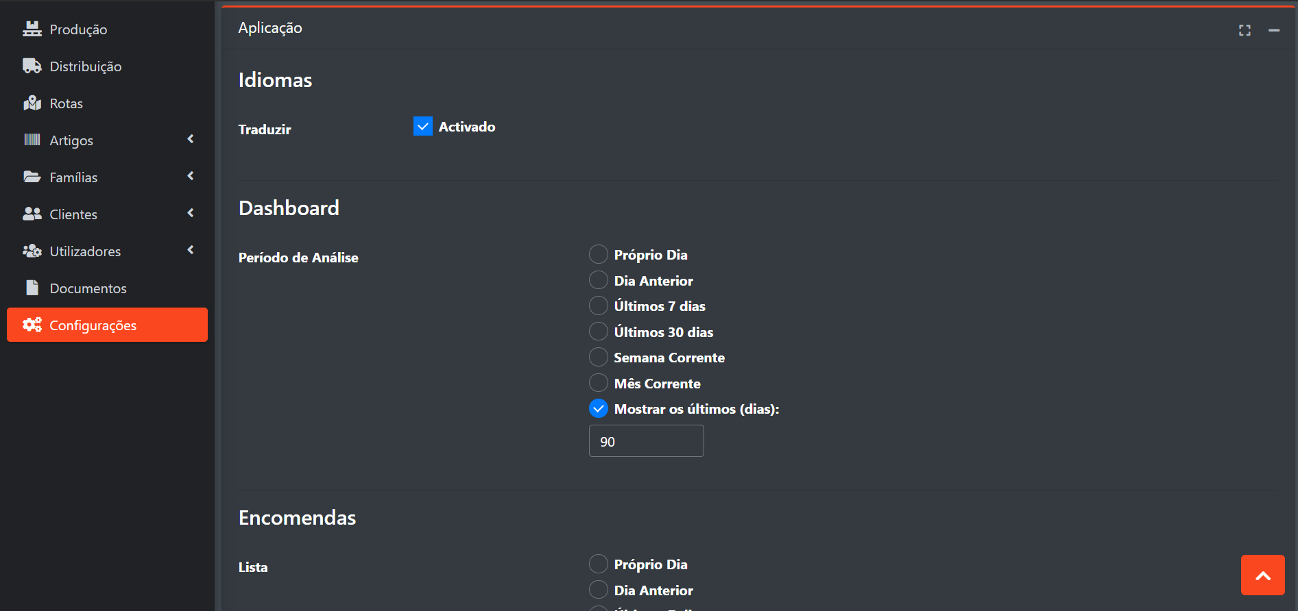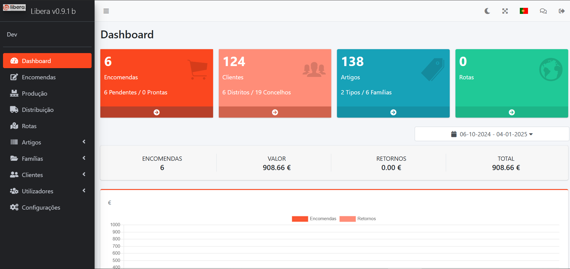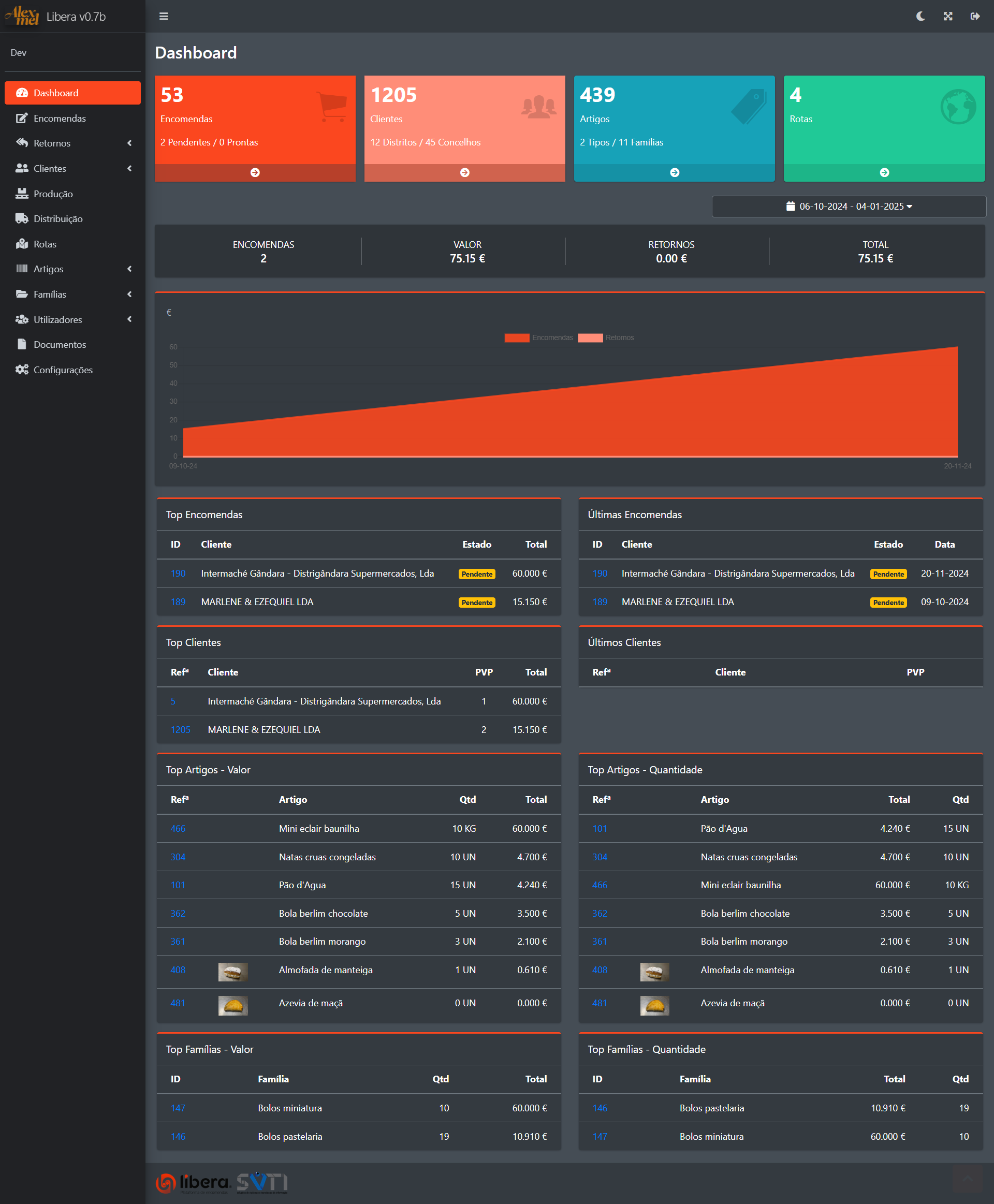 - Acção para emitir documentos relacionados com a encomenda, como Notas de Encomenda, Faturas, Guias de Transporte, etc.