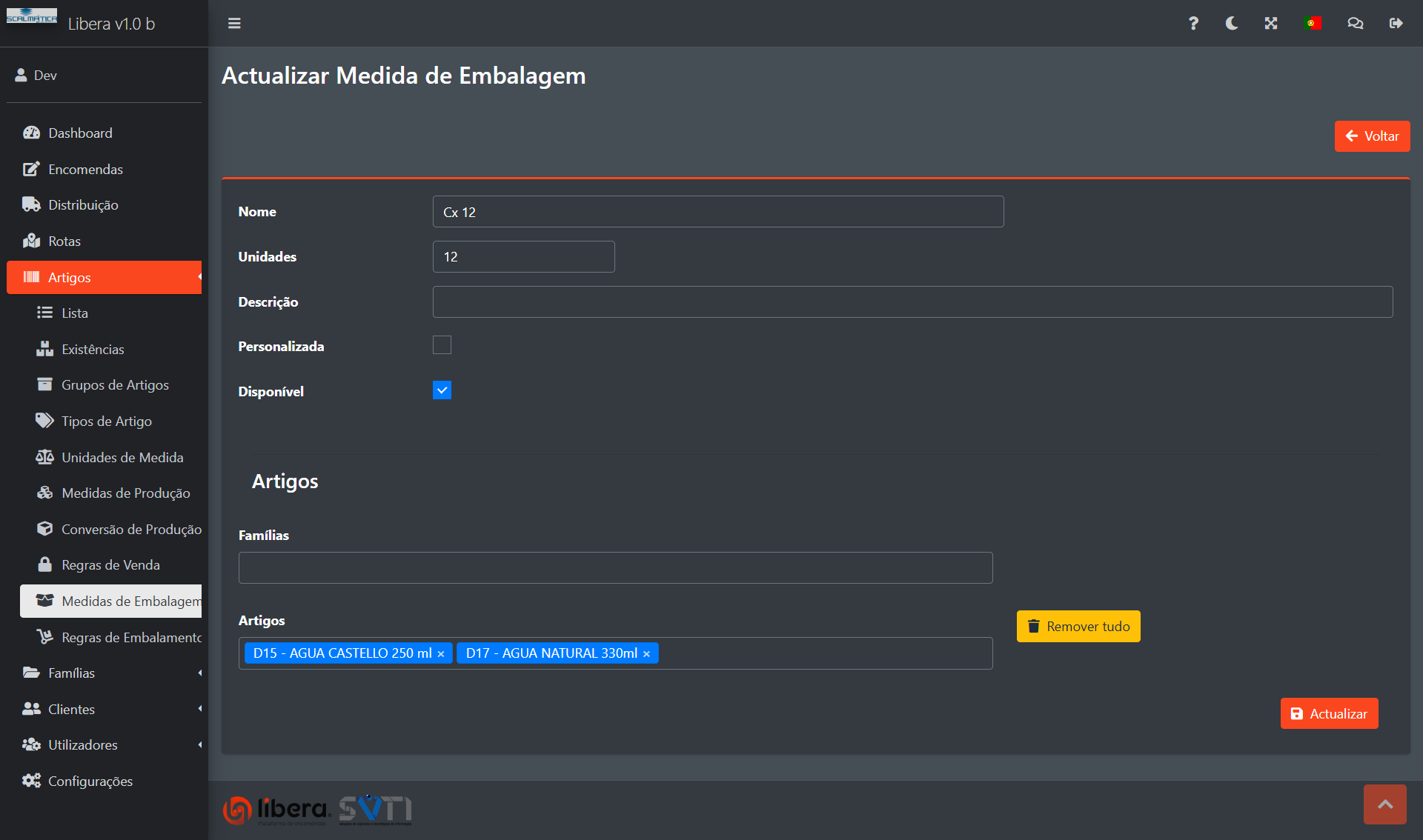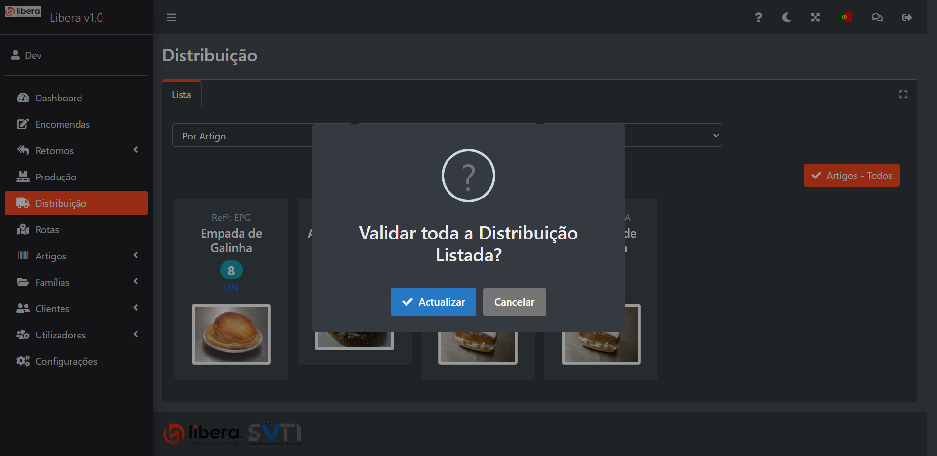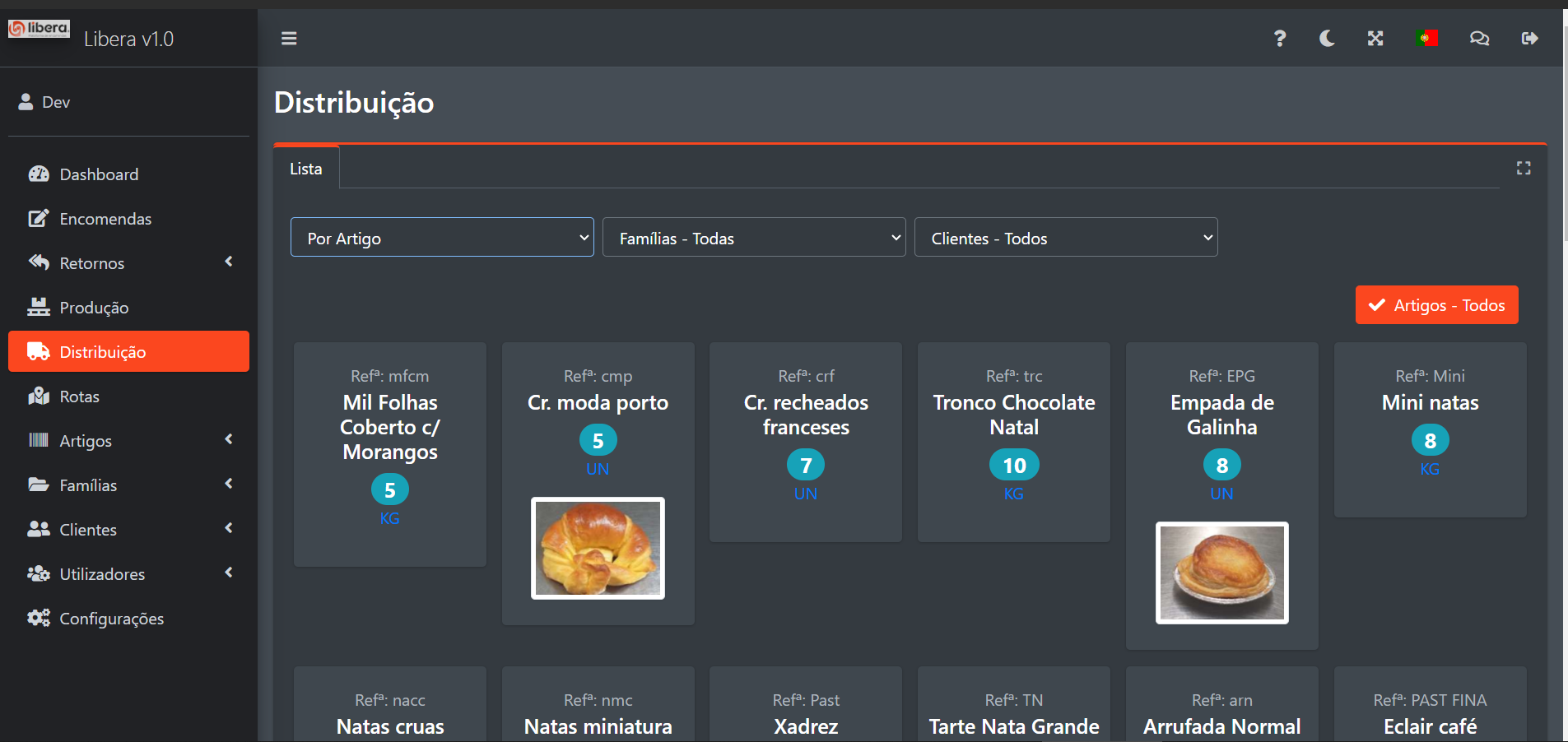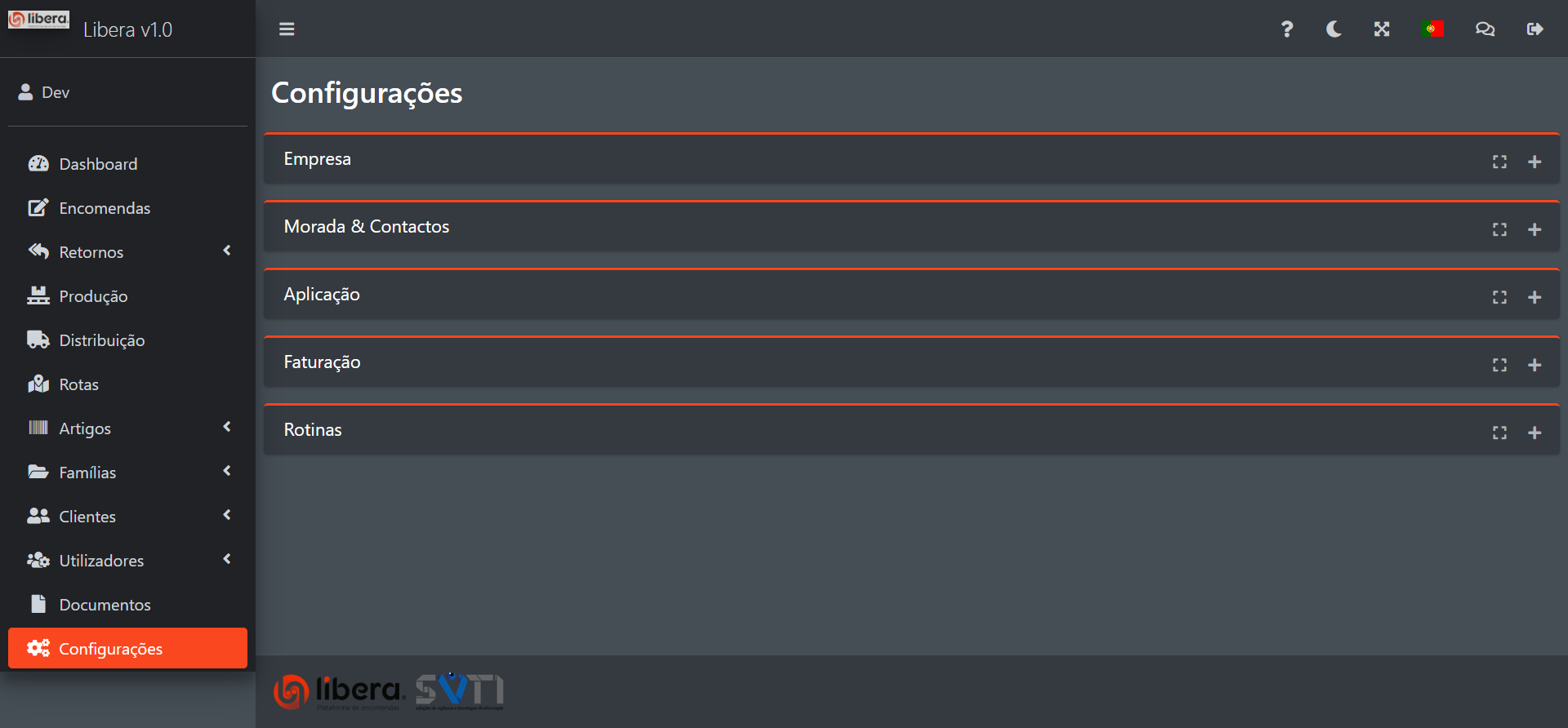 - Acção para emitir documentos relacionados com a encomenda, como Notas de Encomenda, Faturas, Guias de Transporte, etc.