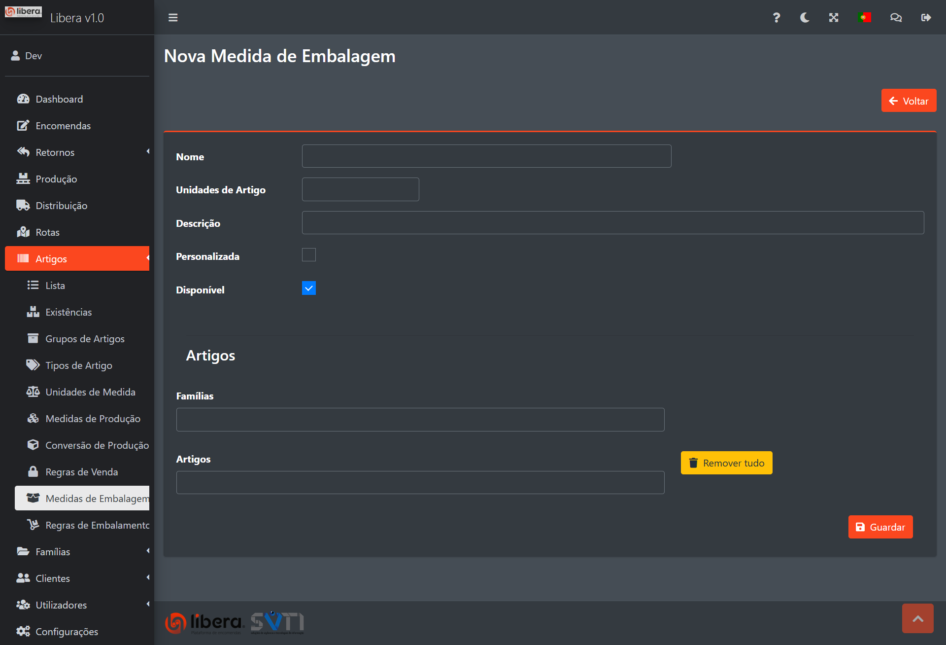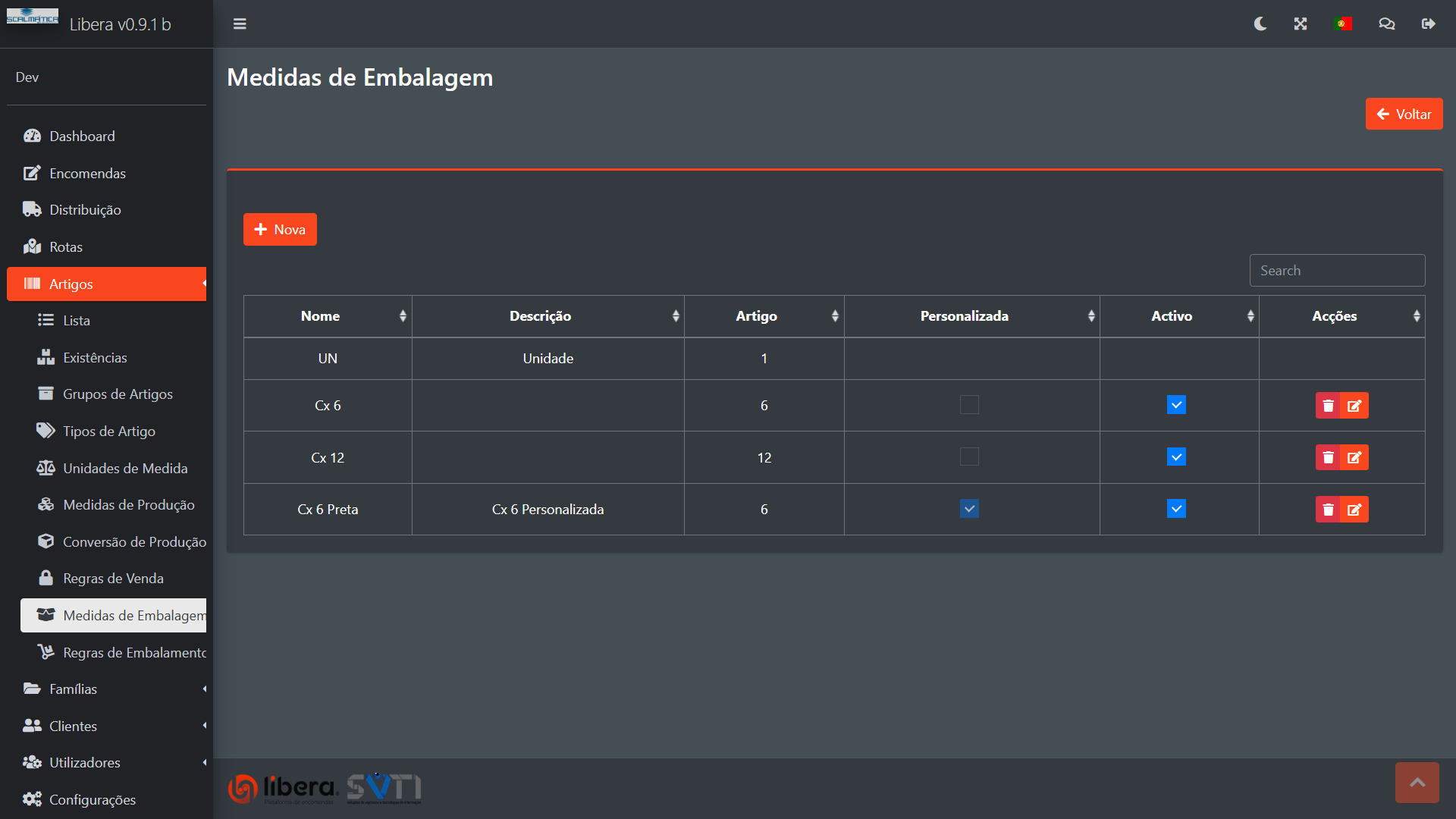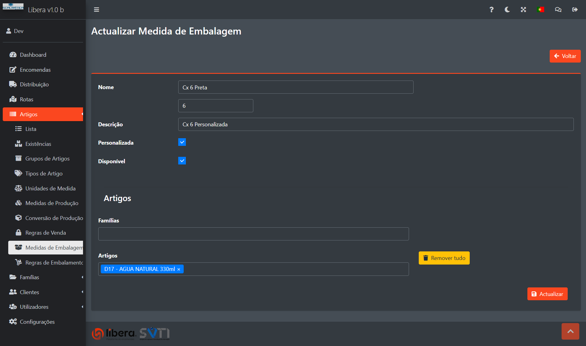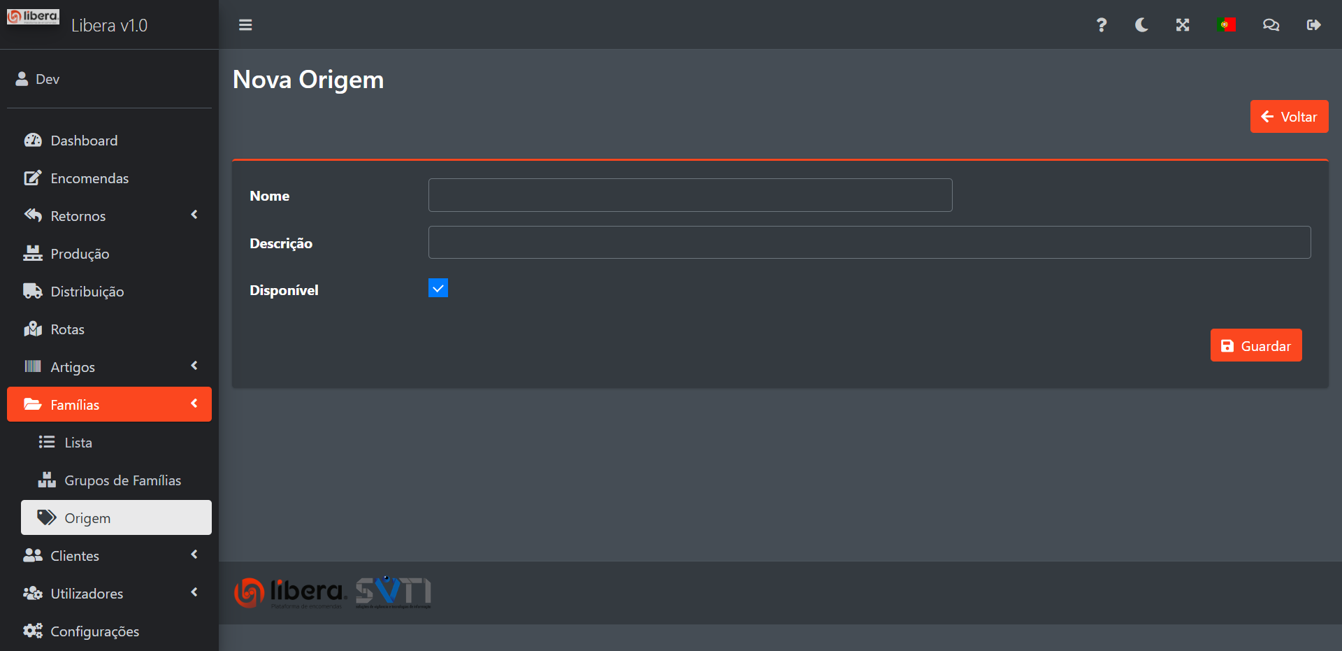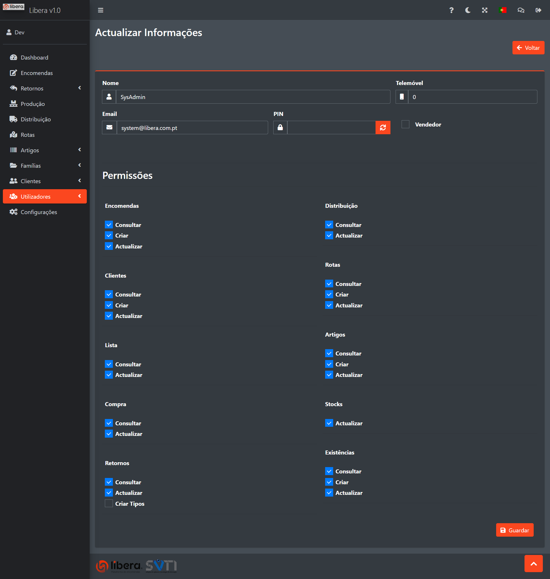 - Acção para emitir documentos relacionados com a encomenda, como Notas de Encomenda, Faturas, Guias de Transporte, etc.