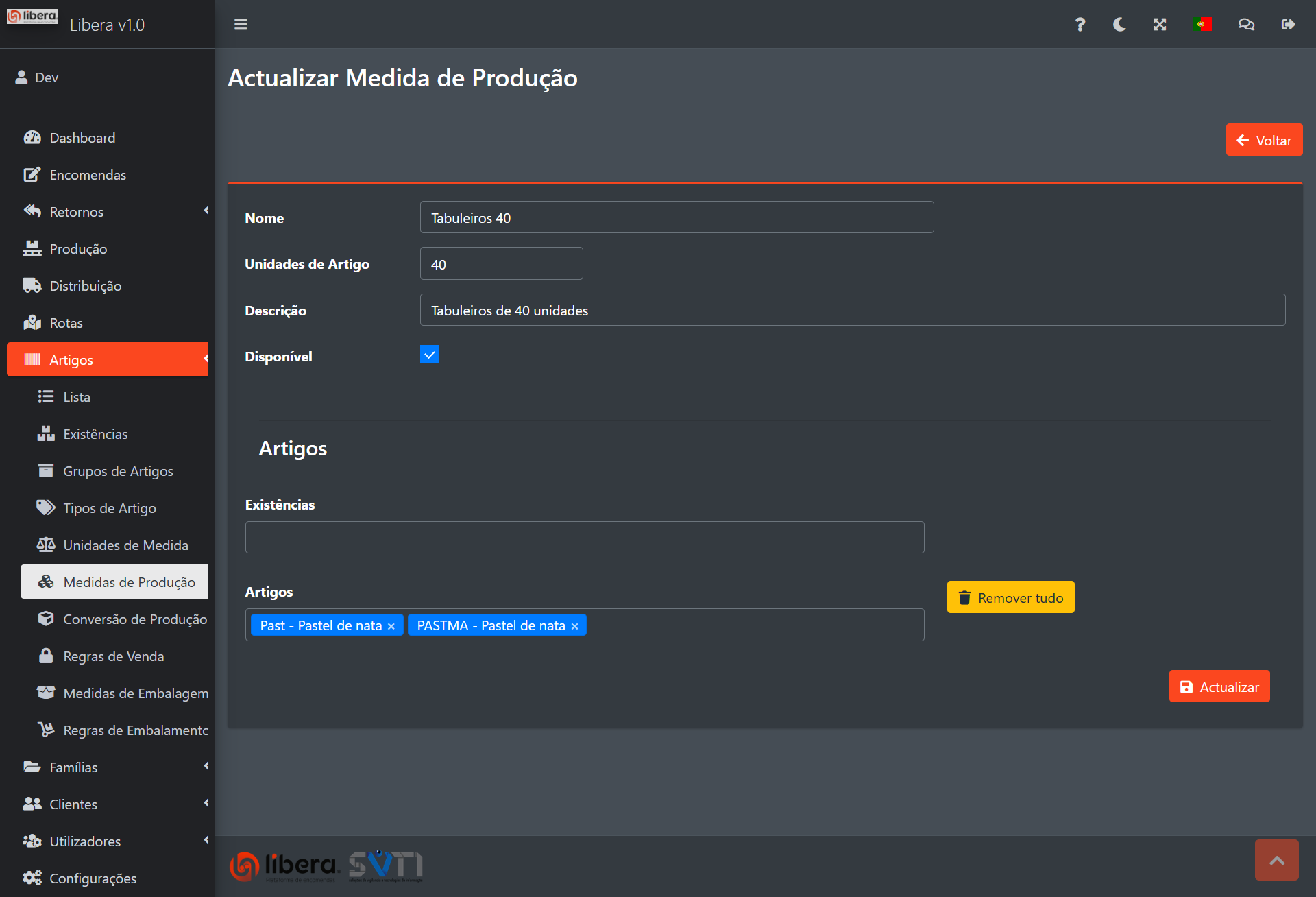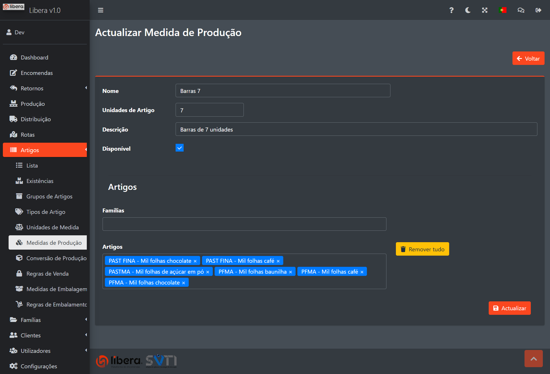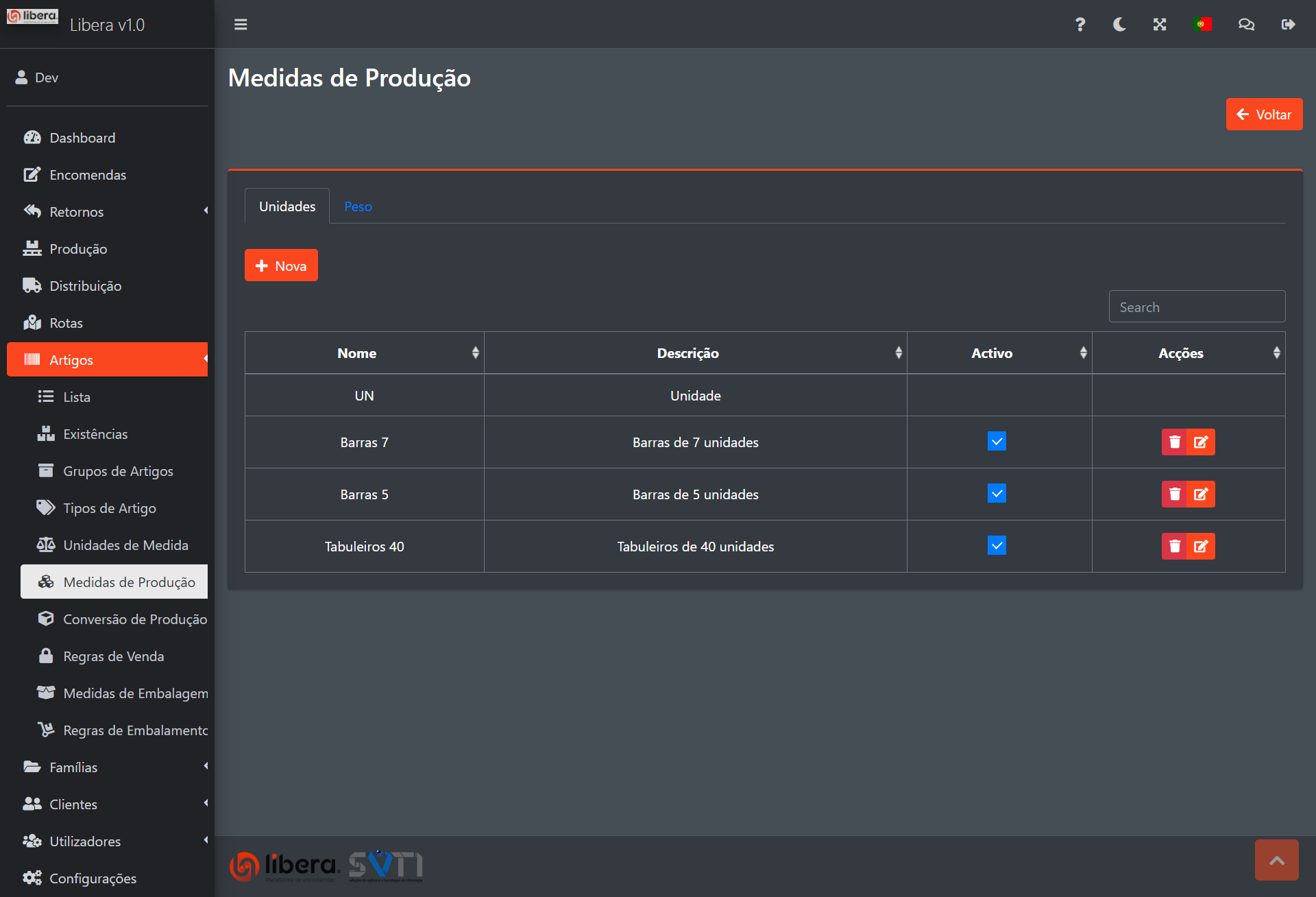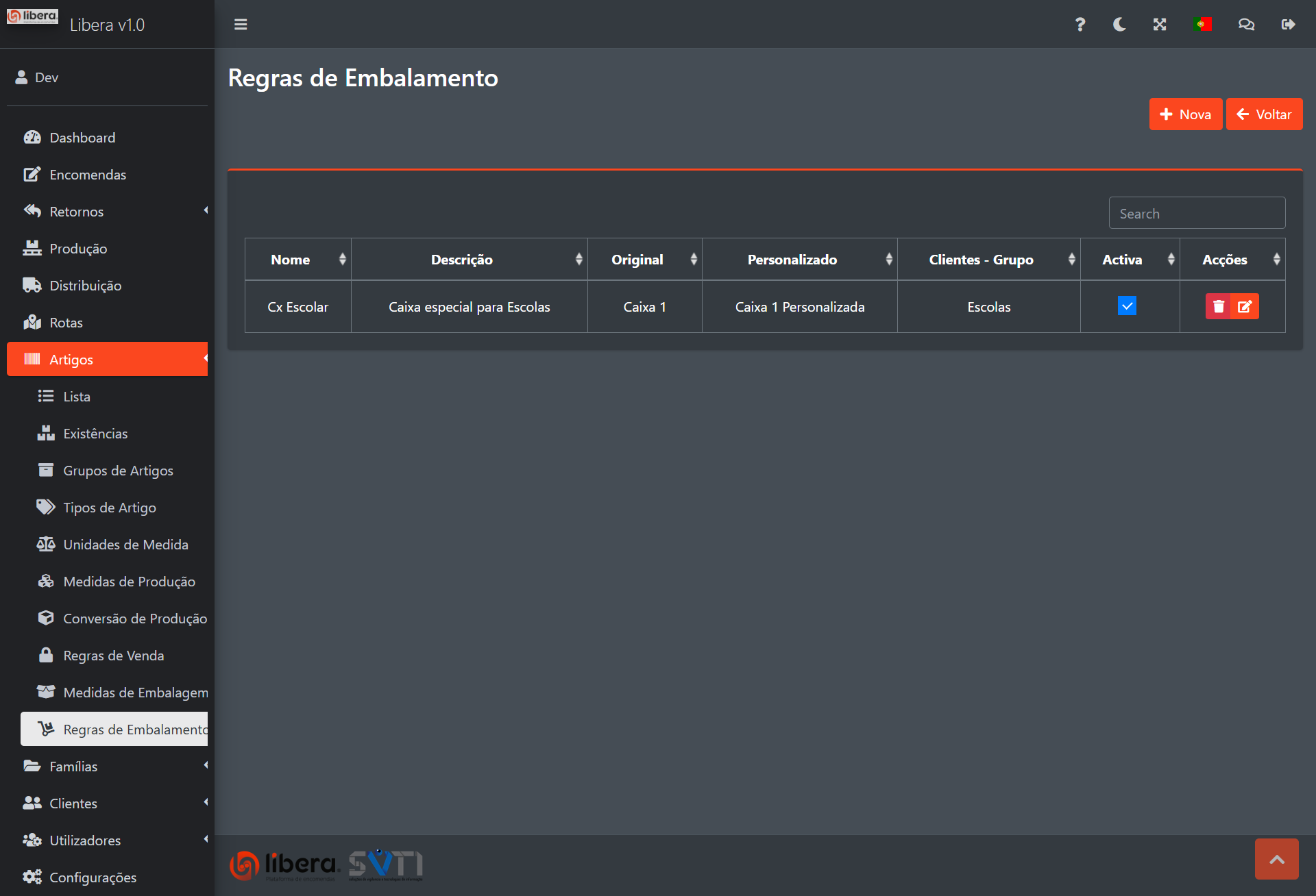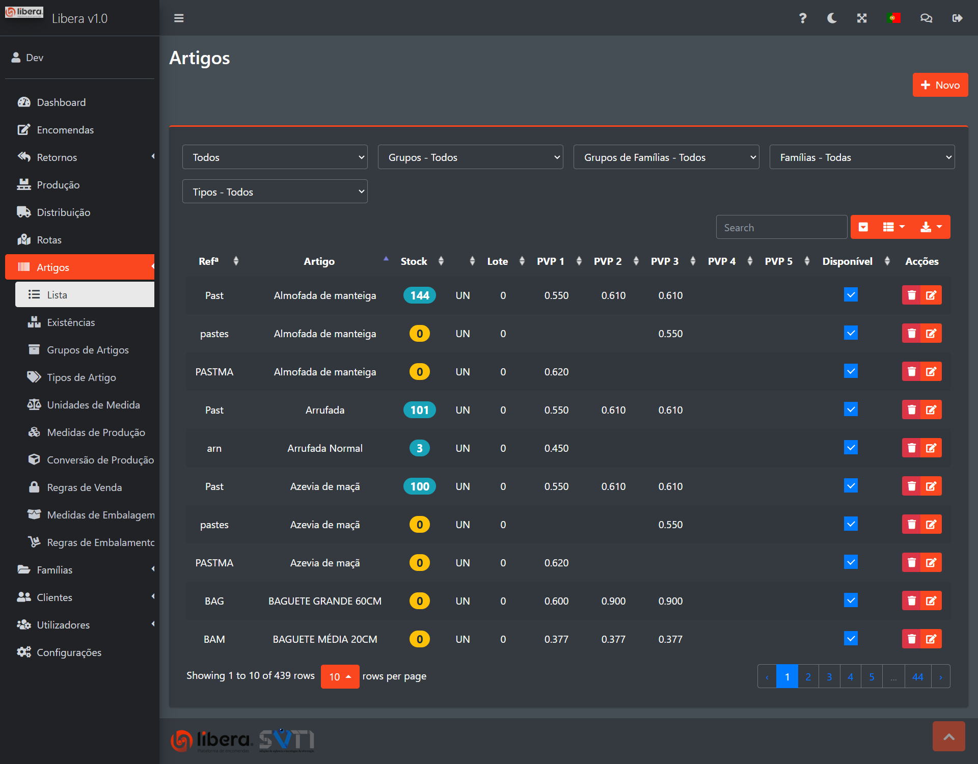 - Acção para emitir documentos relacionados com a encomenda, como Notas de Encomenda, Faturas, Guias de Transporte, etc.