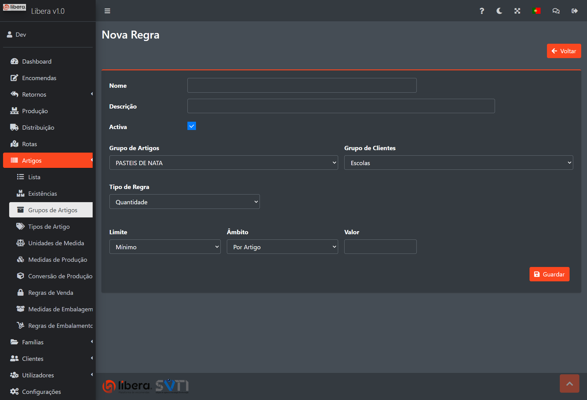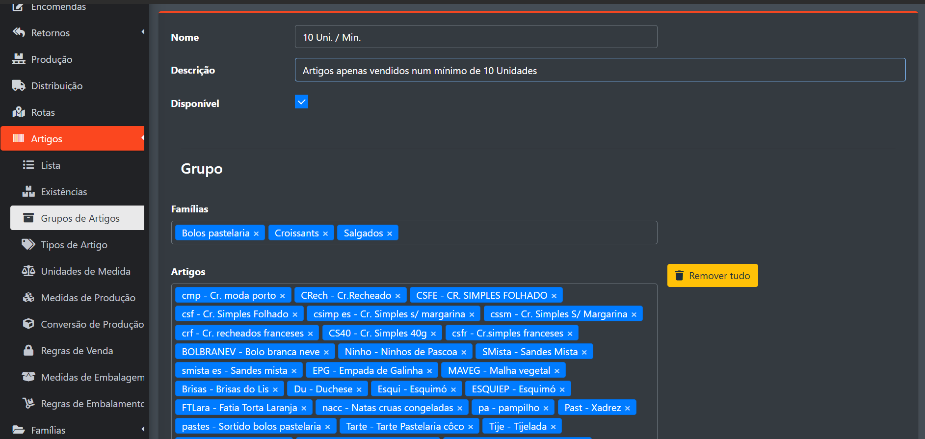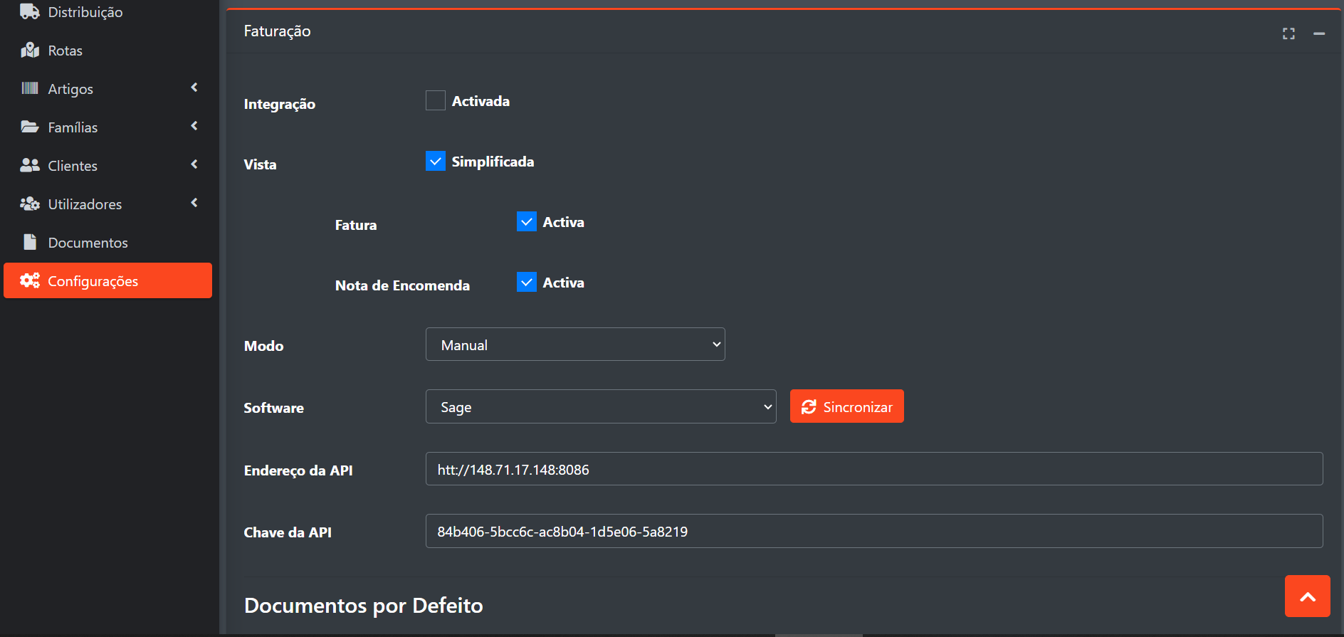- Visível apenas se estiver configurada a "Faturação Simplificada"