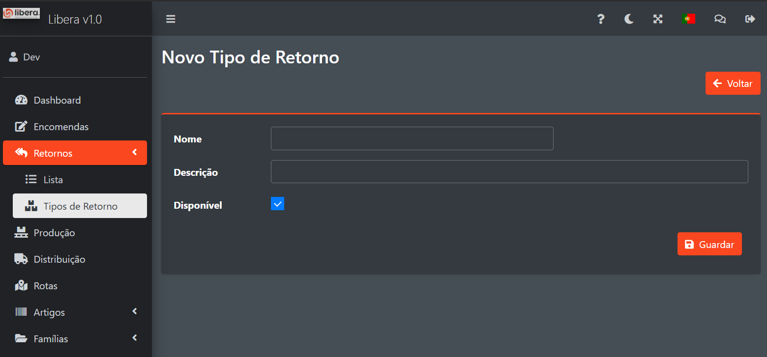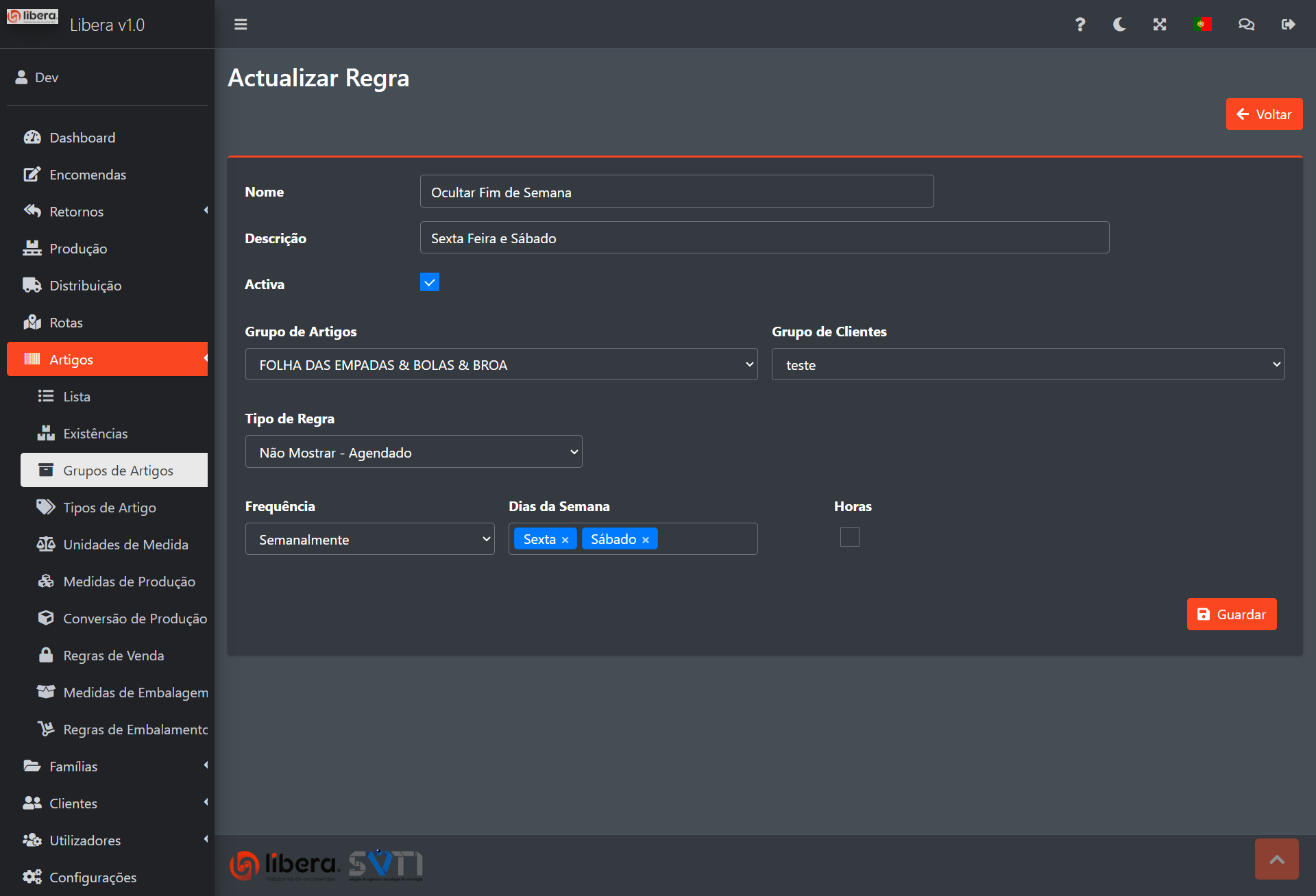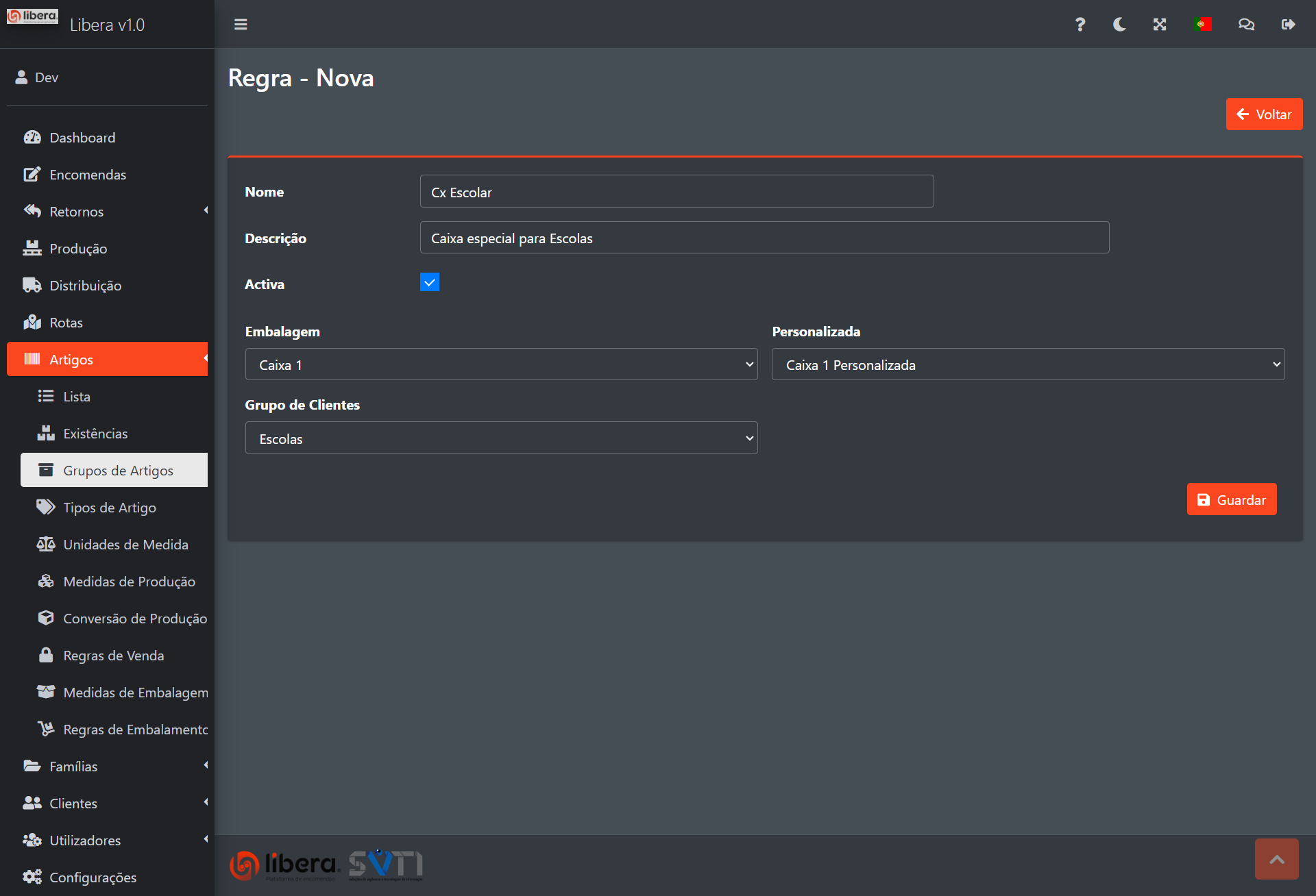 - Visível apenas se estiver configurada a "Faturação Simplificada"