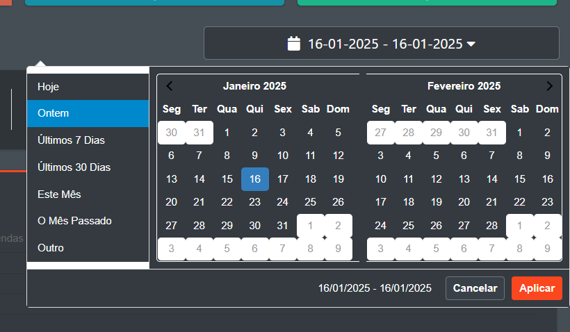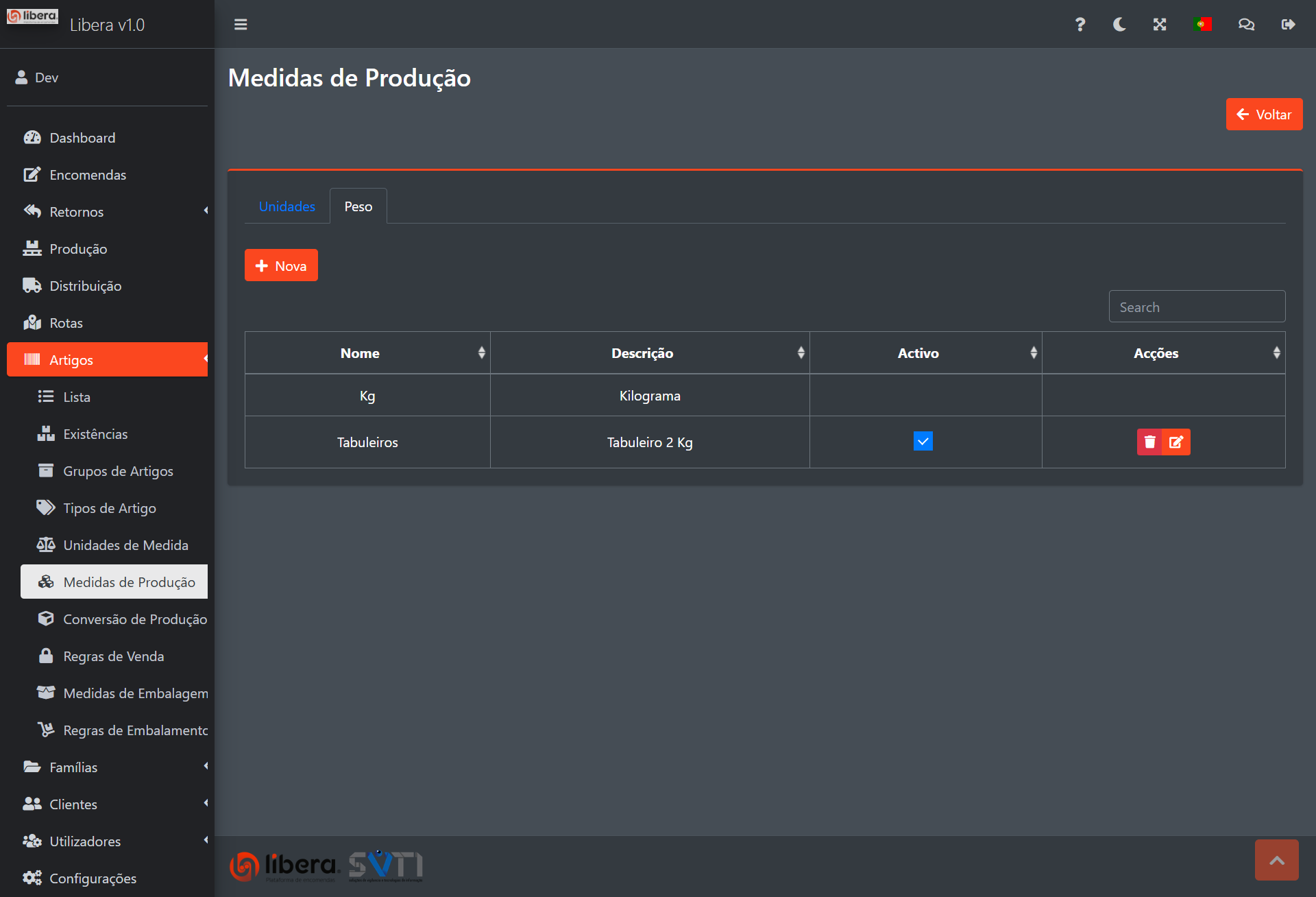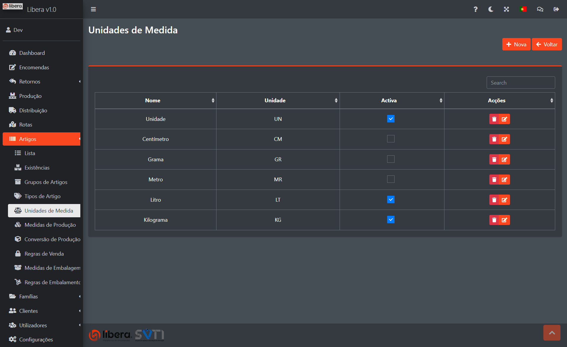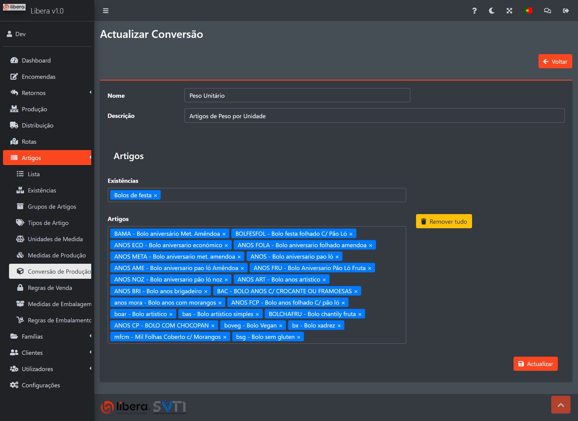 - Define os campos visíveis na tabela. Útil para impressão ou exportação em ficheiro.