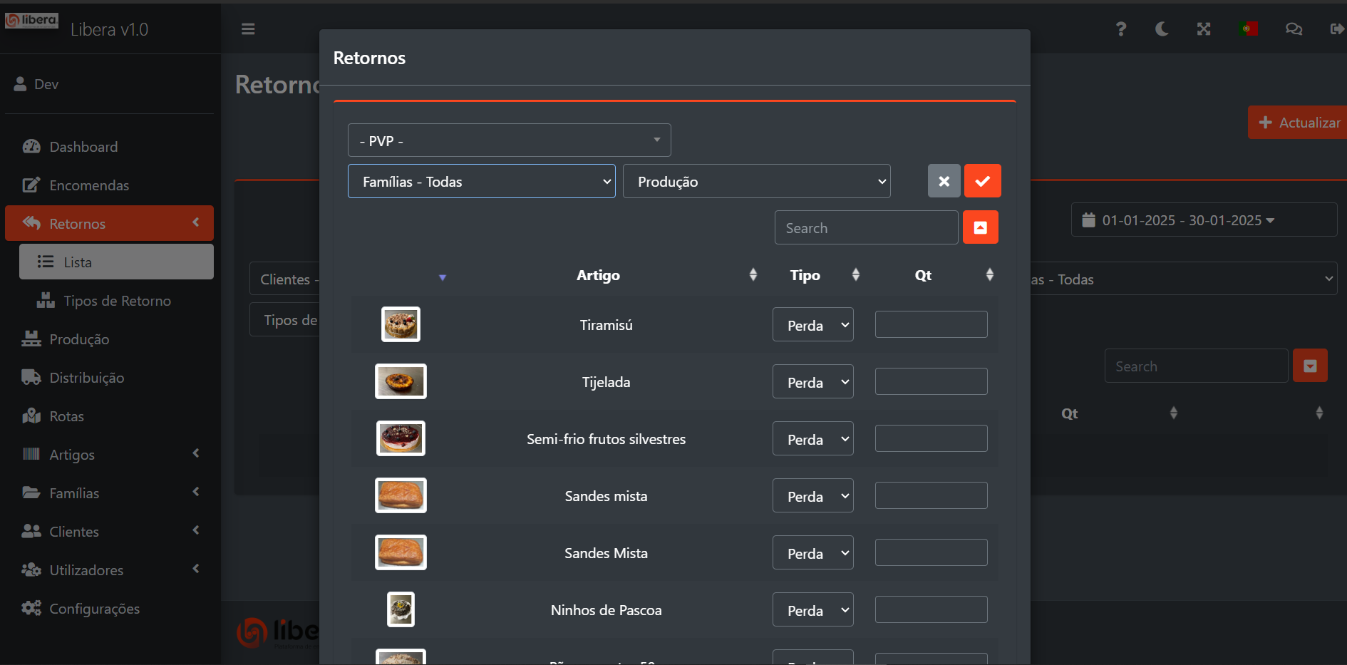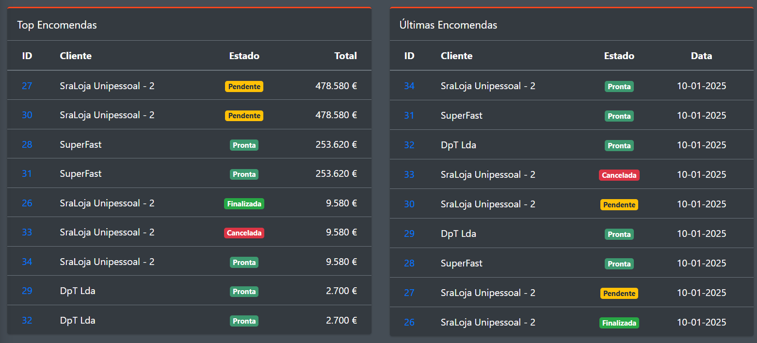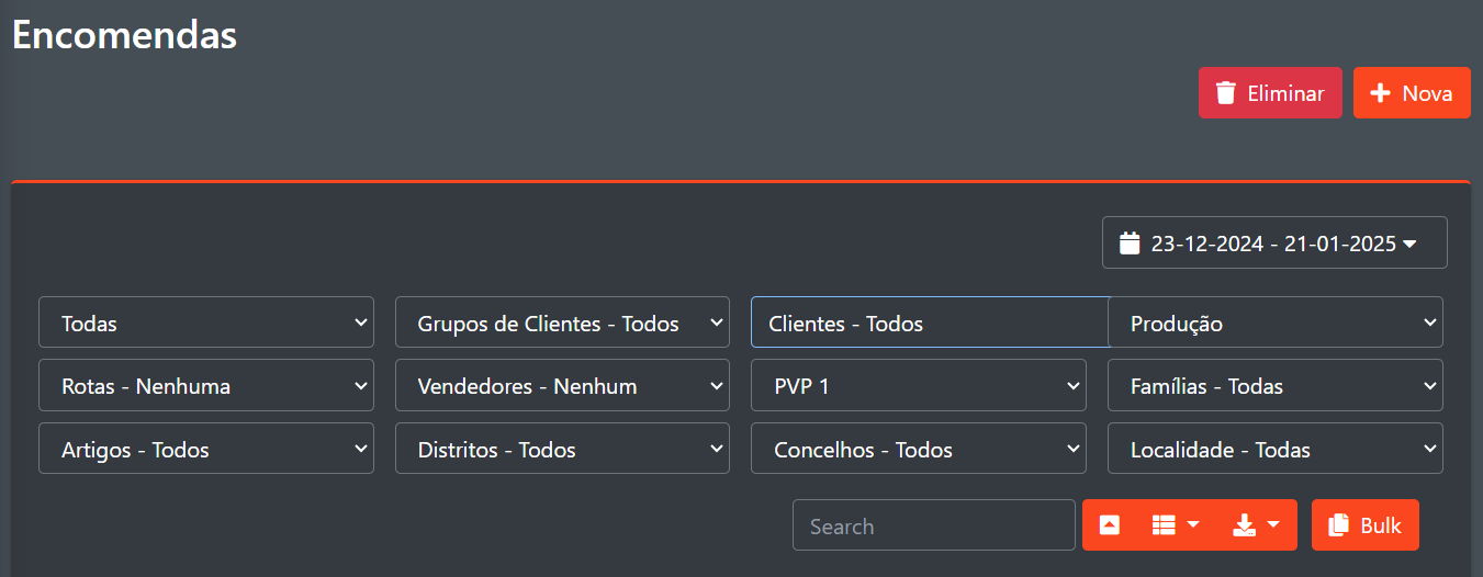 - Executa a funcionalidade de criação de encomenda com os mesmos artigos da encomenda original. Pode ser alterada antes de ser gravada.
