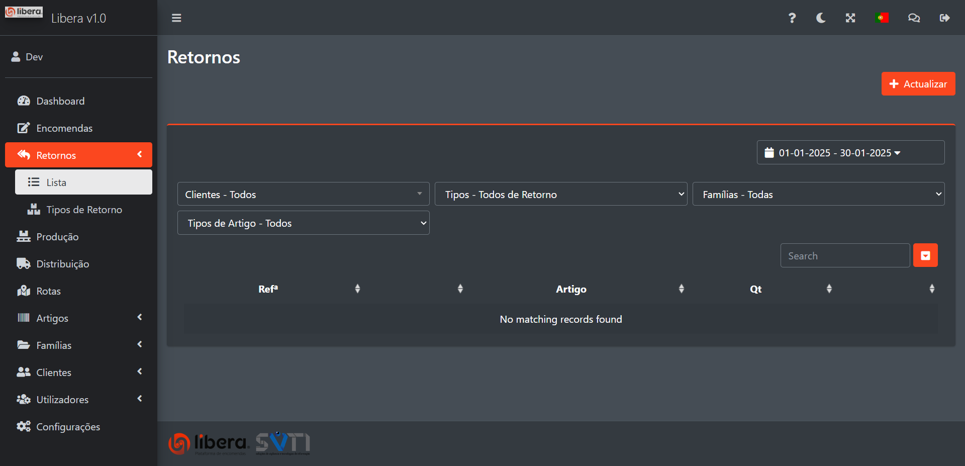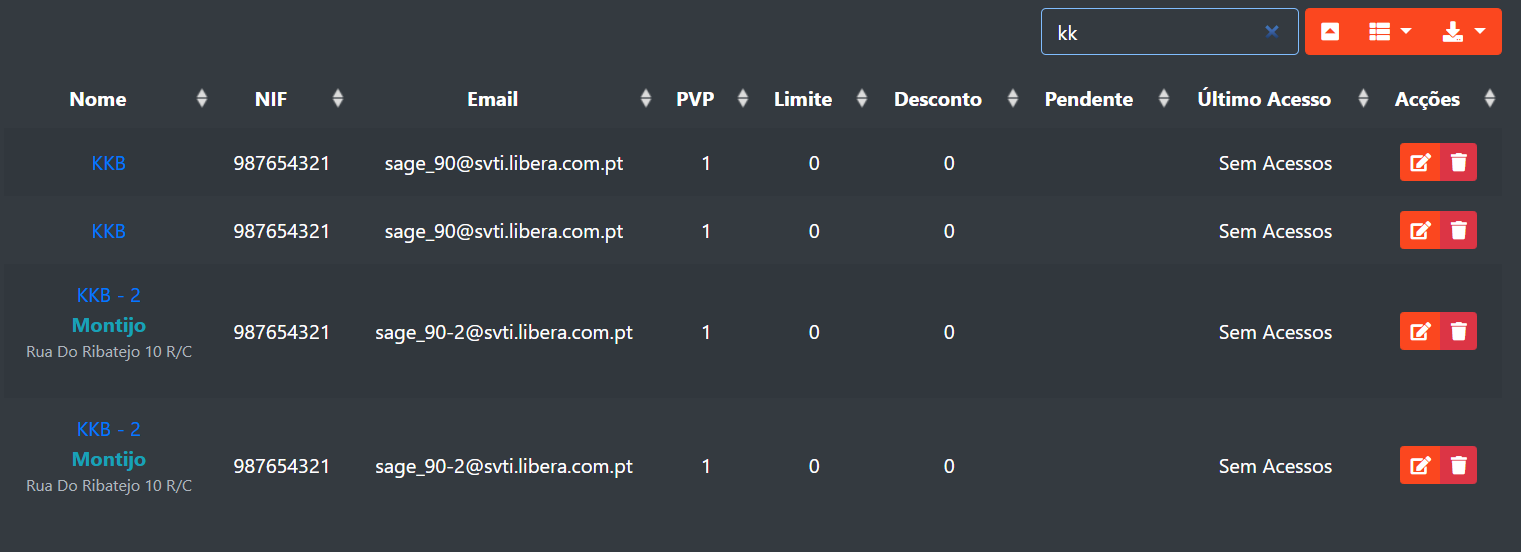 - Filtra a lista pelos termos completos ou parciais inseridos, em qualquer dos campos